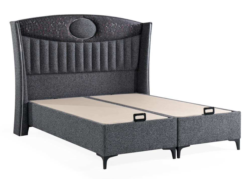 Тапицираното легло Romeo е дизайнерски модел, съчетаващ функционалност и съвременна модерна визия, проектиран с внимание към всеки детайл. Капитонираната табла е декорирана с алуминиеви лайсни, които придават допълнителен комфорт и естетика, превръщайки леглото в акцент с изтънчен характер за всяка елегантна и модерна спалня. Таблата и основата са тапицирани с висококачествена и устойчива мека дамаска PERU 520 GREY, която носи усещане за уют, комфорт и стил. Тапицираната основа е снабдена с вградена подматрачна система, оборудвана с повдигащ механизъм и газови амортисьори, осигуряващи лесен достъп до просторно вътрешно пространство за съхранение – идеално за завивки, възглавници, спално бельо и други вещи, които трябва да бъдат подредени практично и дискретно. Конструкцията на леглото гарантира здравина, удобство и дълготрайна експлоатация, съчетавайки функционалност, стил и надеждност в един завършен продукт, който се вписва идеално във всяко съвременно интериорно пространство.