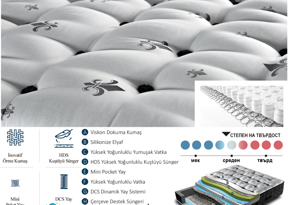 - При избор в комплект с матрак – луксозен двулицев матрак Royalty Comfort с прошит ТОП матрак.