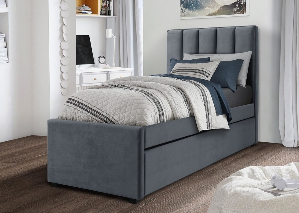 Тапицирано легло Russo в Сив цвят, е единично разтегателно легло тип сандвич, с две спални отделения, снабдено с разтегателен механизъм. Капитонирано е с мека кадифена дамаска, в елегантен дизайн. Легло Russo се предлага в комплект с 2 подматрачни скари / рамки, с възможност за добавяне на два единични матрака с размери 90/200см.