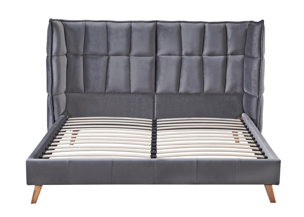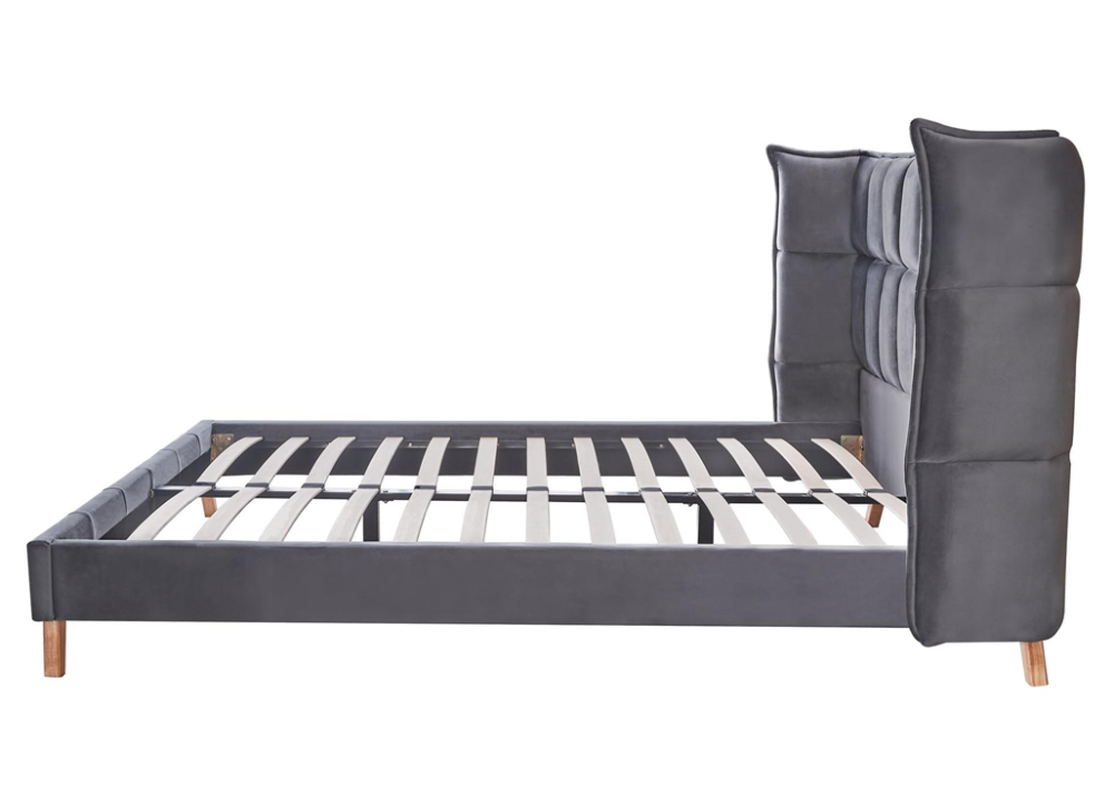 Спално легло Scandino е тапициран с висококачествена кадифена дамаска, осигуряваща стилен и комфортен вид. Оборудвано с дървена ламелна подматрачна рамка и не разполага с повдигащ механизъм.