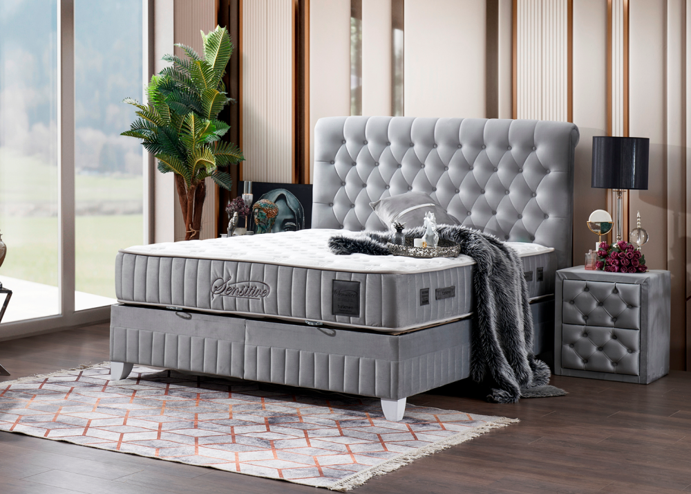 Тапицирано легло Sensitive е с модерна капитонирана табла, капитонирана основа снабдена с повдигаща се подматрачна рамка. Таблата и основата на легло Sensitive са тапицирани с качествена дамаска, в модерен дизайн. Спално легло Sensitive се предлага в 10 размера.