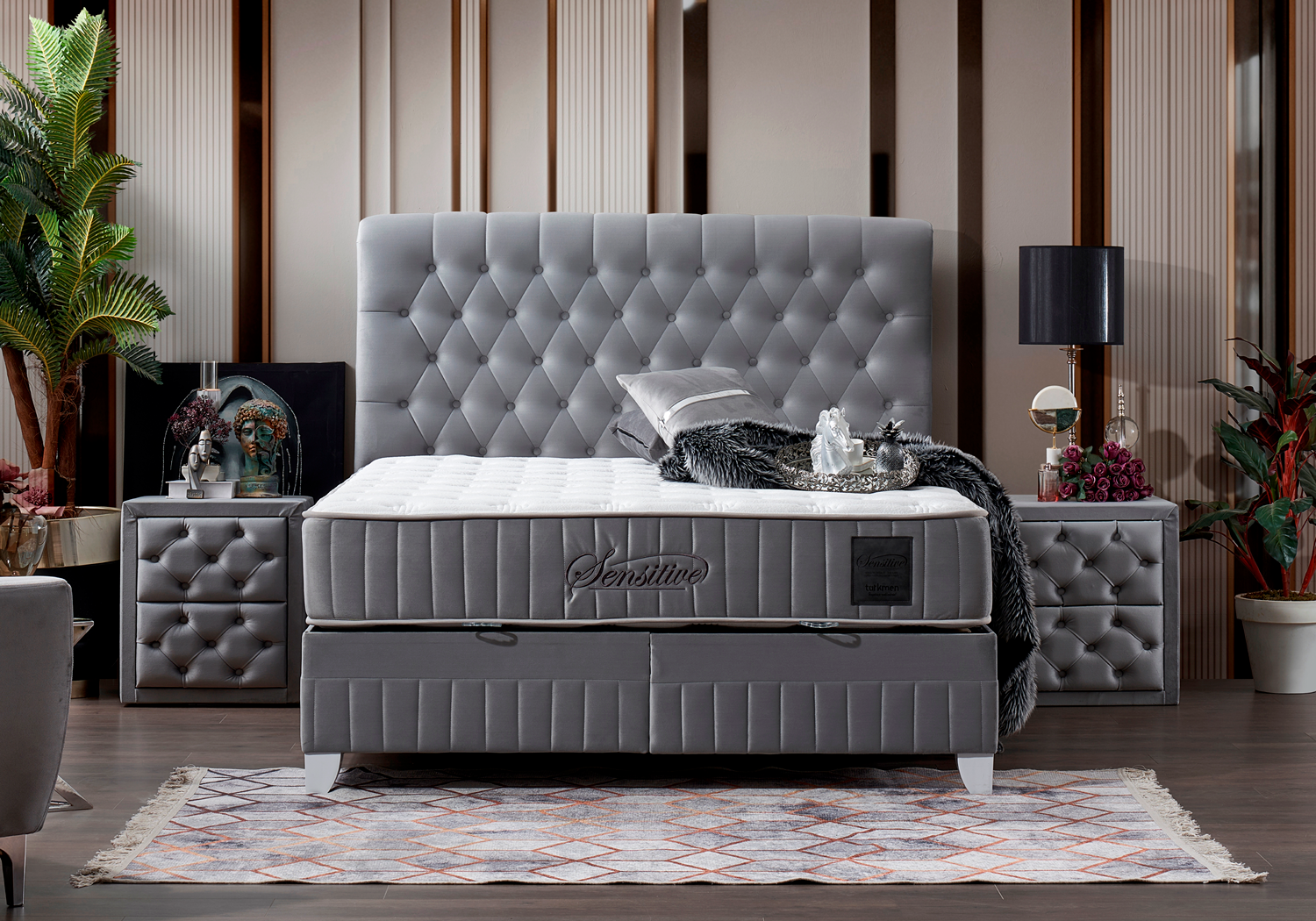 Тапицирано легло Sensitive е с модерна капитонирана табла, капитонирана основа снабдена с повдигаща се подматрачна рамка. Таблата и основата на легло Sensitive са тапицирани с качествена дамаска, в модерен дизайн. Спално легло Sensitive се предлага в 10 размера.