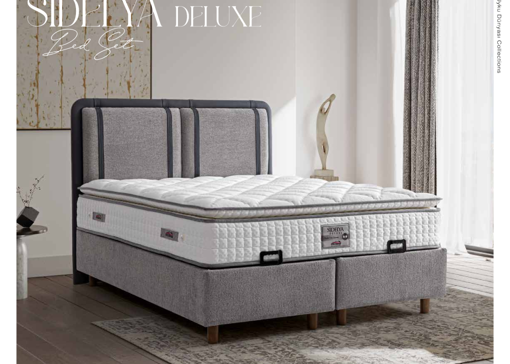 Тапицираното легло Sidelya Deluxe е част от колекцията на мебели Uyku Dünyasi съчетава модерен дизайн, безкомпромисно качество и практична функционалност – перфектен избор за елегантно и уютно обзавеждане.