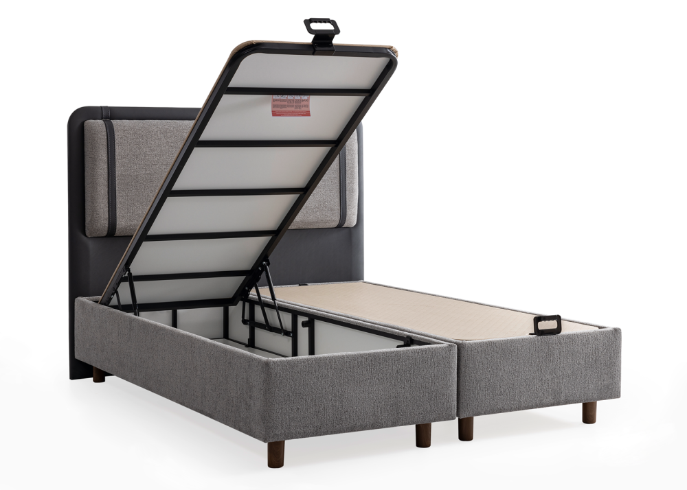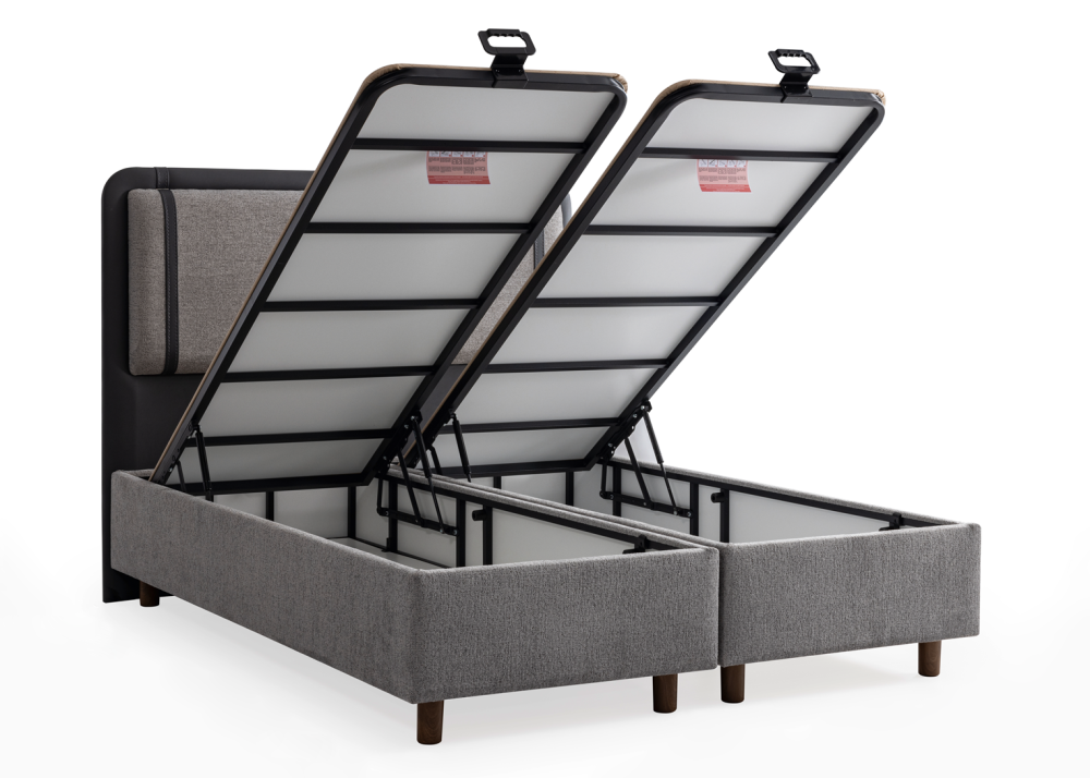 - Основата разполага с вградено дъно и повдигаща се подматрачна система, състояща се от една подматрачна рамка при единичните размери и две подматрачни рамки при двойните размери. Всички рамки са оборудвани с газови амортисьори и спирачка на механизма, която фиксира рамката в отворено положение за по-безопасно и удобно използване. За допълнителна проветривост и защита от влага са монтирани вентилационни капачки.