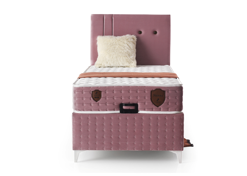 Тапицирано легло Sienna е модулно спално легло в модерен дизайн, с красива капитонирана табла. Изработва се като единично легло подходящо за детска стая и като голямо двойно спално легло, подходящо за всяко спално помещение. Може да се поръча и изработи в 18 цвята. Тапицирано легло Sienna е снабдено с нов модел повдигаща се подматрачна рамка. Тапицирано е с висококачествена дамаска и голямо внимание към детайла. Предлага се без матрак както и в комплект с матрак Sienna.