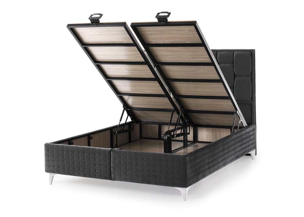 - Базата е снабдена с дъно и нов модел повдигаща система от 1бр (за единичните размери) / 2бр метална подматрачна рамка с цял ламиниран ПДЧ панел. Рамката е оборудвана с 2бр / 4бр газови амортисьори /2х2/ по 750N, може да се повдига всяка основа по отделно или заедно, има спирачка на механизма, която може да се ползва когато механизма е отворен. На дъното и рамката са монтирани вентилационни капачки. Основата предоставя голямо празно подматрачно пространство, подходящо за съхранение на спални завивки и други вещи.