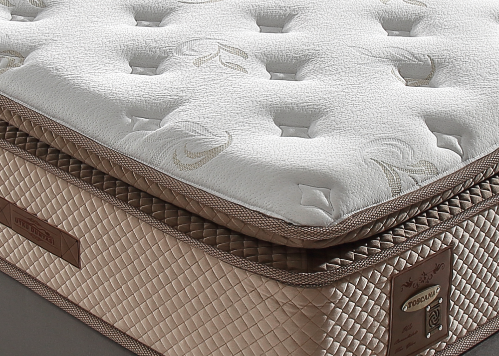 - Матрак Toscana е с ядро от Bonnell Spring пружинна система обвита с борд от дунапрен с висока плътност и допълнителни омекотяващи слоеве от дунапрен и HR пяна.