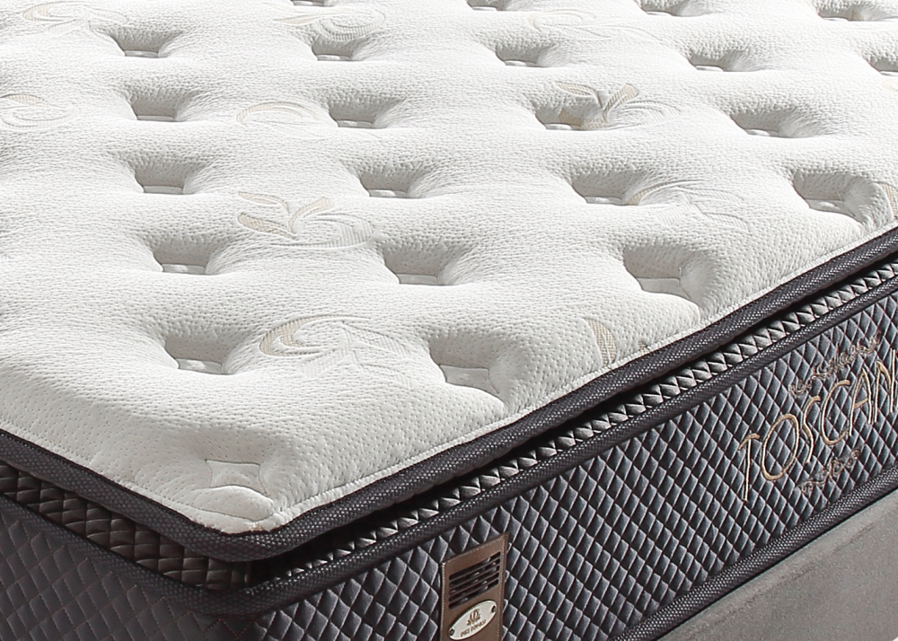 - Матрак Toscana е с ядро от Bonnell Spring пружинна система обвита с борд от дунапрен с висока плътност и допълнителни омекотяващи слоеве от дунапрен и HR пяна.