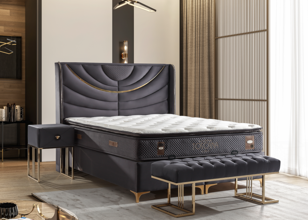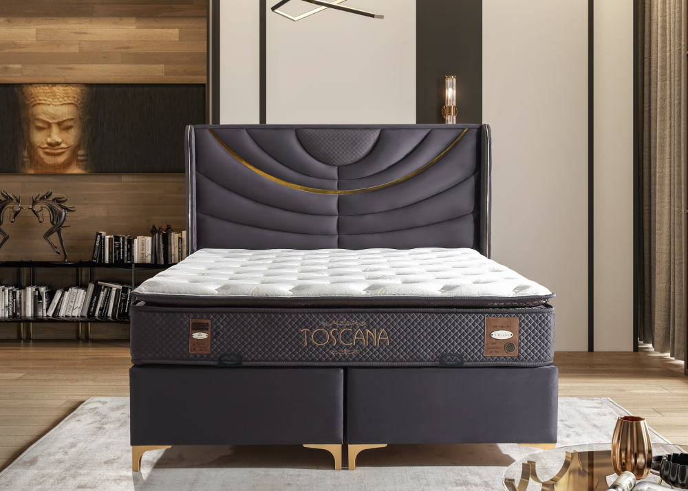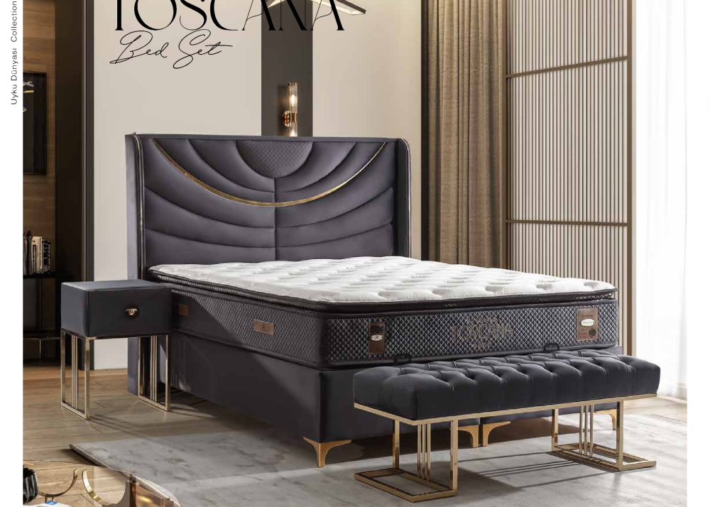 Тапицираното легло Toscana е част от колекцията на мебели Uyku Dünyasi съчетава модерен дизайн, безкомпромисно качество и практична функционалност и е идеален избор за елегантно и уютно обзавеждане.