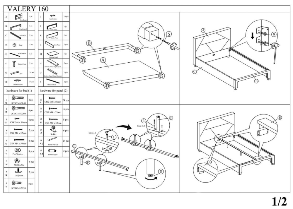 - Габаритни размери на леглото Ш/Д/В: 165/214/102см.