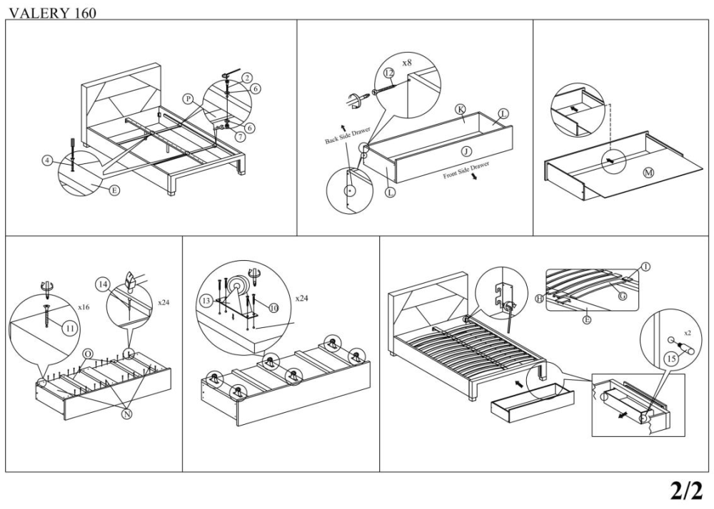 Тапицираното легло Valery впечатлява с модерен и елегантен дизайн, капитонирана табла и основа с чекмедже, тапицирани с висококачествена тъкана дамаска. Моделът е оборудван с едно голямо чекмедже на колелца, осигуряващо допълнително място за съхранение и лесен достъп до вещите. Предлага се в комплект с подматрачна рамка и е подходящо за двулицев матрак с размер 160/200 см – идеално решение за стилна и функционална спалня.