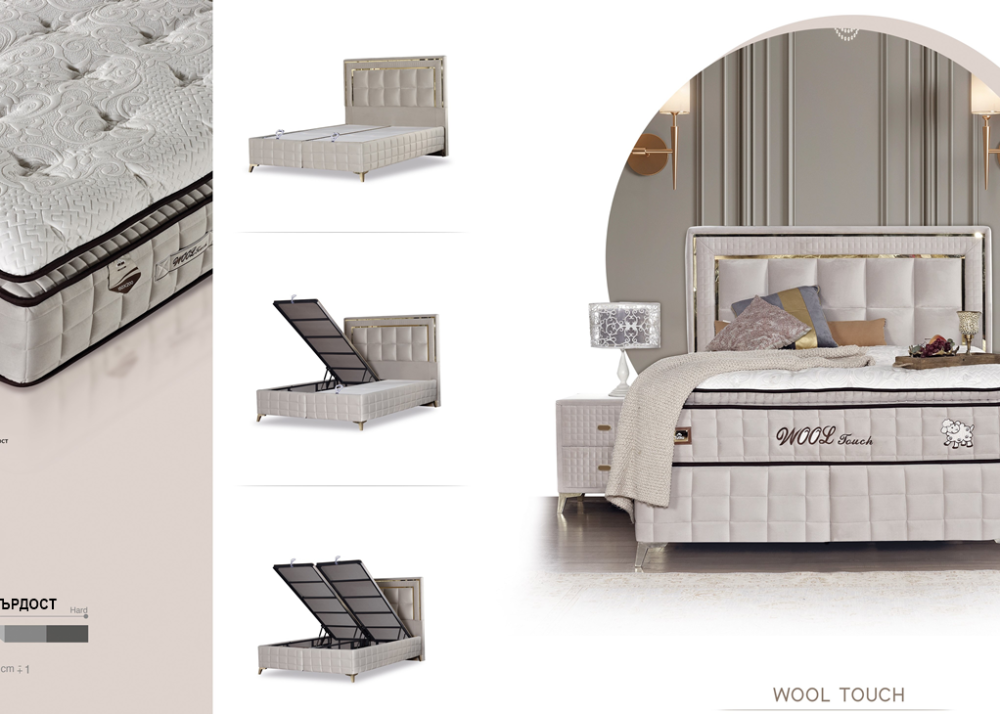 Подробни характеристики за тапицирано легло Wool Touch и матрак Wool Touch.