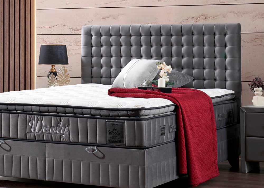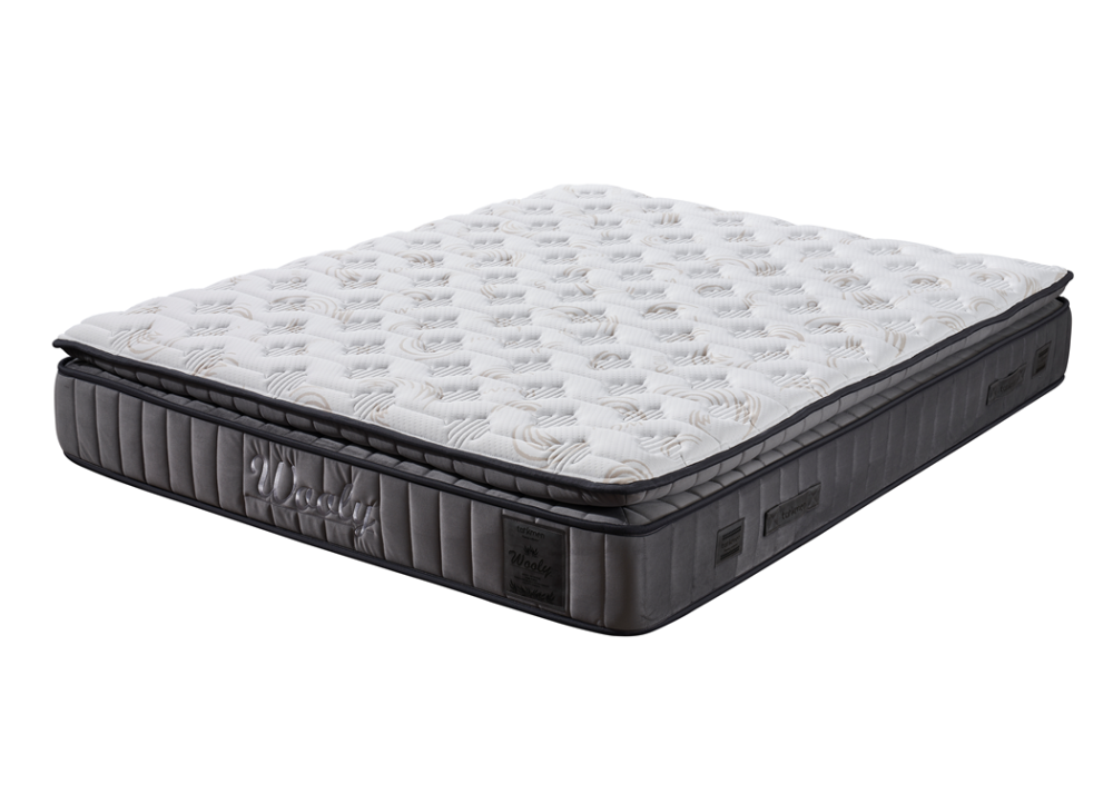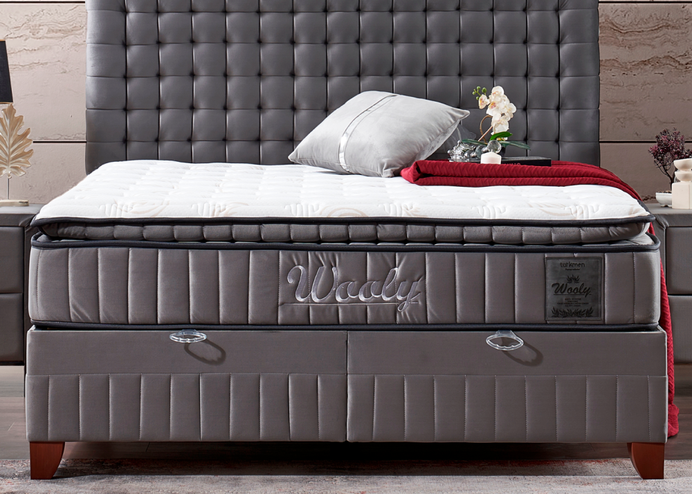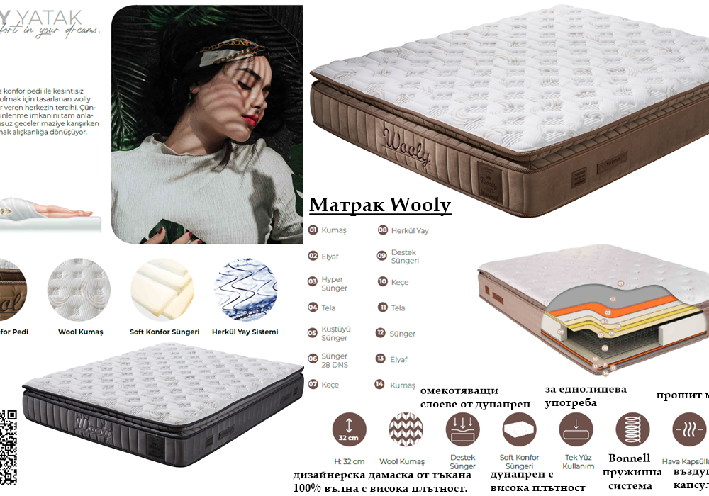 - Матрак Wooly е снабден комфортен прошит топ матрак и дизайнерска плюшена дамаска от 100% естествена чиста вълна.