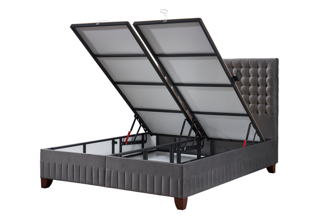 - Базата е снабдена с дъно и нов модел повдигаща система от 1бр / 2бр метална подматрачна рамка с цял ламиниран ПДЧ панел. Рамката е оборудвана с 2бр / 4бр газови амортисьори /2х2/ по 750N, може да се повдига всяка основа по отделно или заедно, има спирачка на механизма, която може да се ползва когато механизма е отворен. На дъното и рамката са монтирани вентилационни капачки. Основата предоставя голямо празно подматрачно пространство, подходящо за съхранение на спални завивки и други вещи.