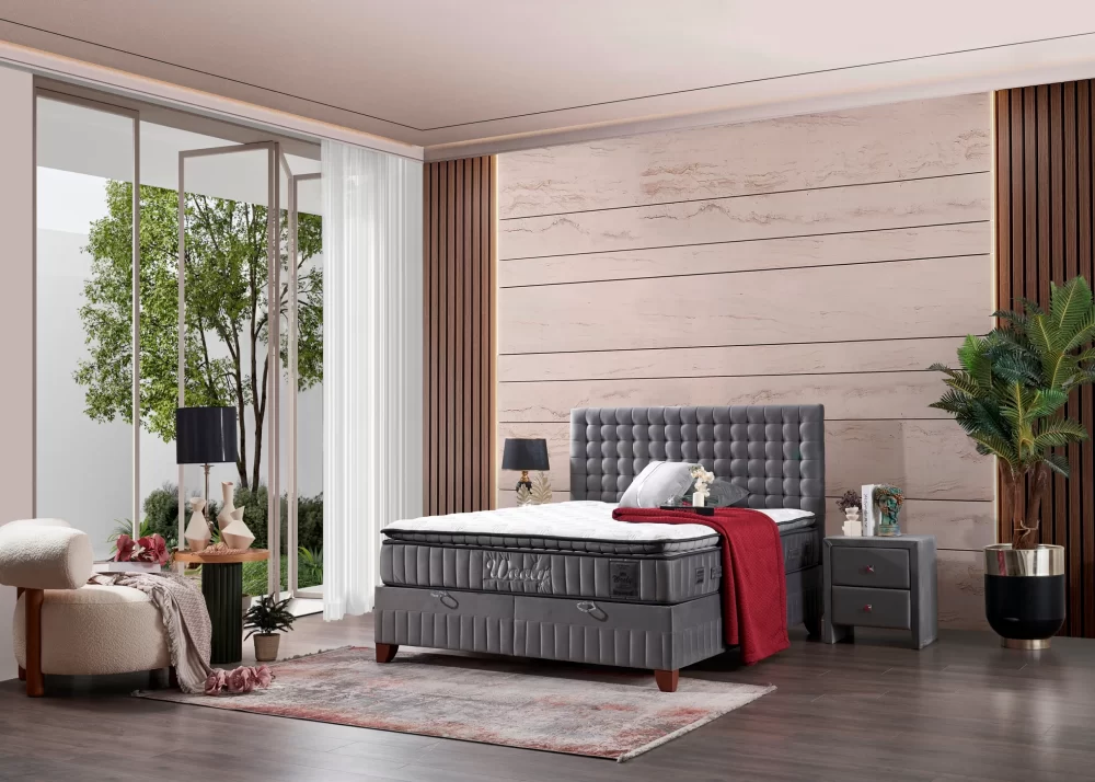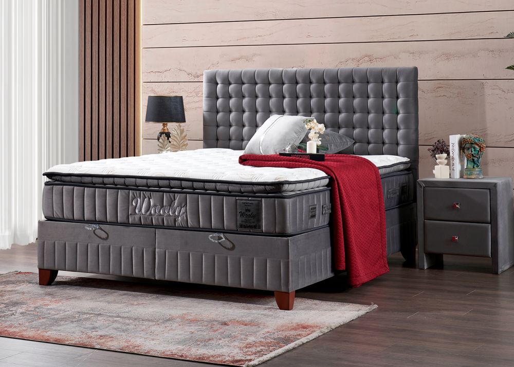 Тапицирано легло Wooly е модулно, готов окомплектован вариант, който се състои се от капитонирана табла и капитонирана основа с повдигаща подматрачна система.