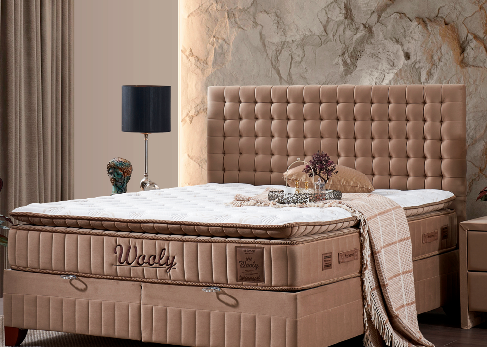 - Матрак Wooly е снабден комфортен прошит топ матрак и дизайнерска плюшена дамаска от 100% естествена чиста вълна.
