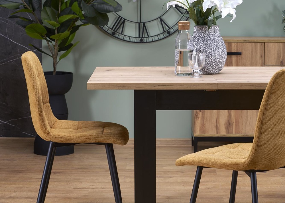 - Разтегателна маса Bagio занаятчийски дъб с черни крака.