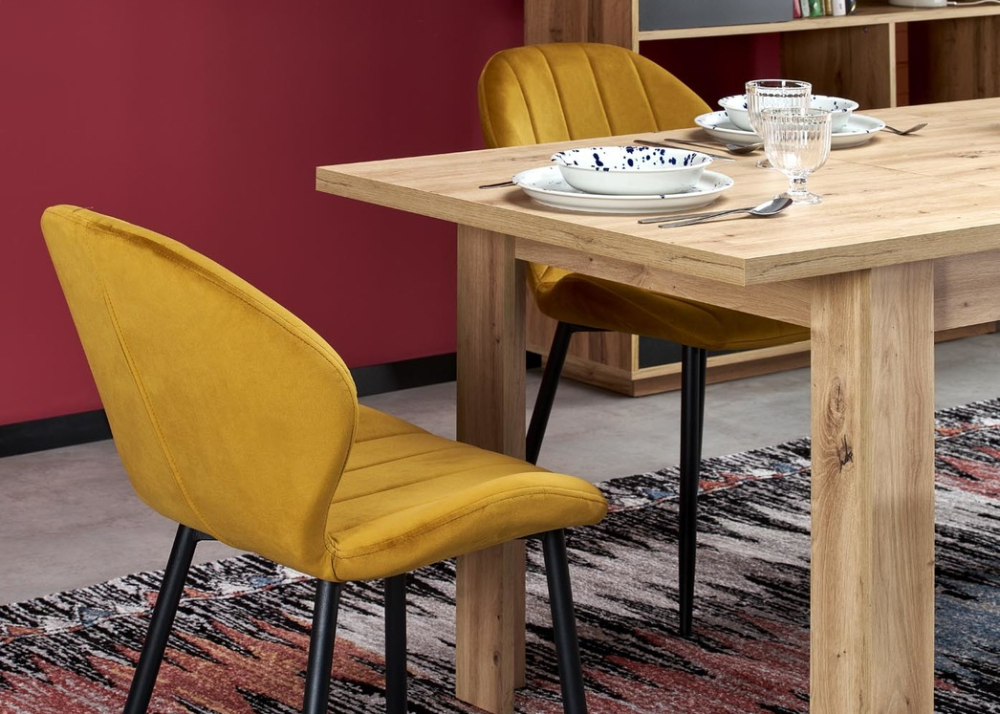 - Трапезна маса Bagio занаятчийски дъб с черни крака.