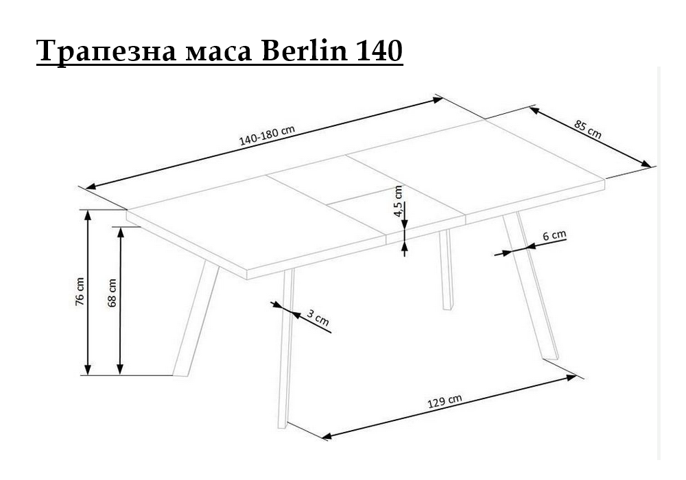 - Маса Berlin 140 е с дължина на плота 140см и може да се разтегне до 180см.