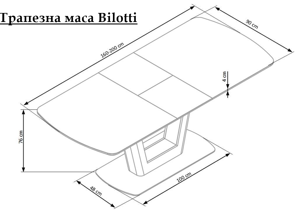 - Маса Bilotti е с дължина на плота 160см и може да се разтегне до 200см.