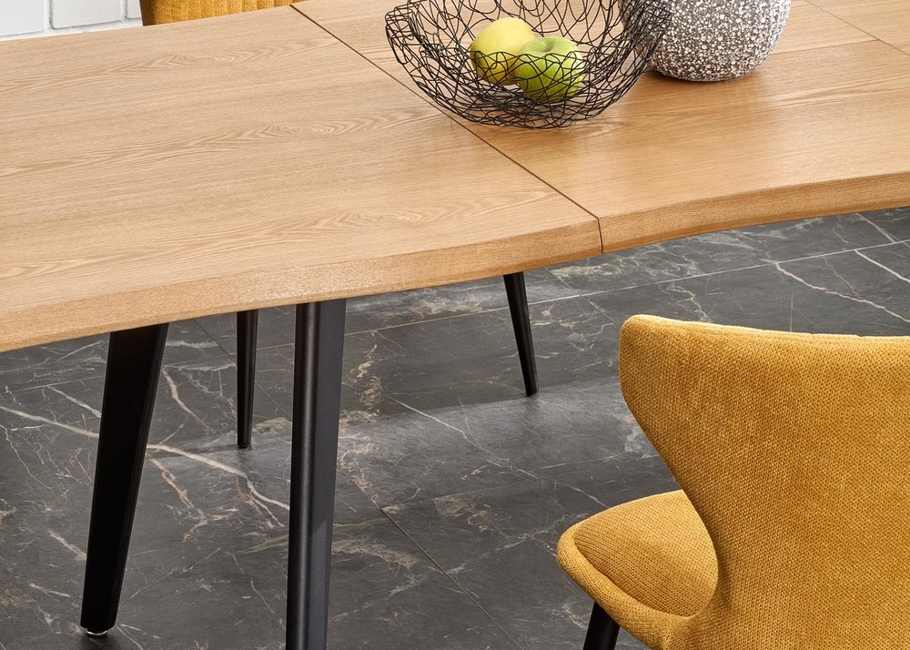 Трапезна маса Dickson модел 2 е модерна и практична, с ламиниран MDF плот от естествен дъб и елегантни прахово боядисани черни стоманени крака, предлага перфектна комбинация от естетика и функционалност. Тази комбинация не само подобрява естетиката на Вашия дом, но и гарантира издръжливост и стабилност. Универсалността на разтегателната маса Ви позволява лесно да се превърне в по-голяма маса и да имате възможността да организирате различни събирания, което я прави практично и стилно допълнение към Вашия дом.