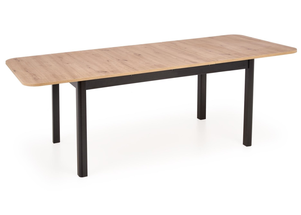 - Трапезна маса с разтегателен плот, в правоъгълна форма със заоблени ръбове.