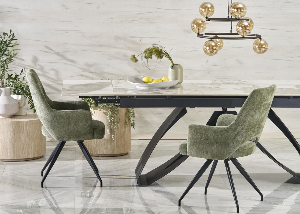 Разтегателна маса Hilario е зашеметяваща, съчетава модерен дизайн с елегантност, лукс и практична функционалност, което я прави стилно допълнение към всеки декор. Маса Hilario е идеалното допълнение към всеки съвременен интериор. Подходяща за обзавеждането на Вашия дом или ресторант, трапезария, кухня или дневна.