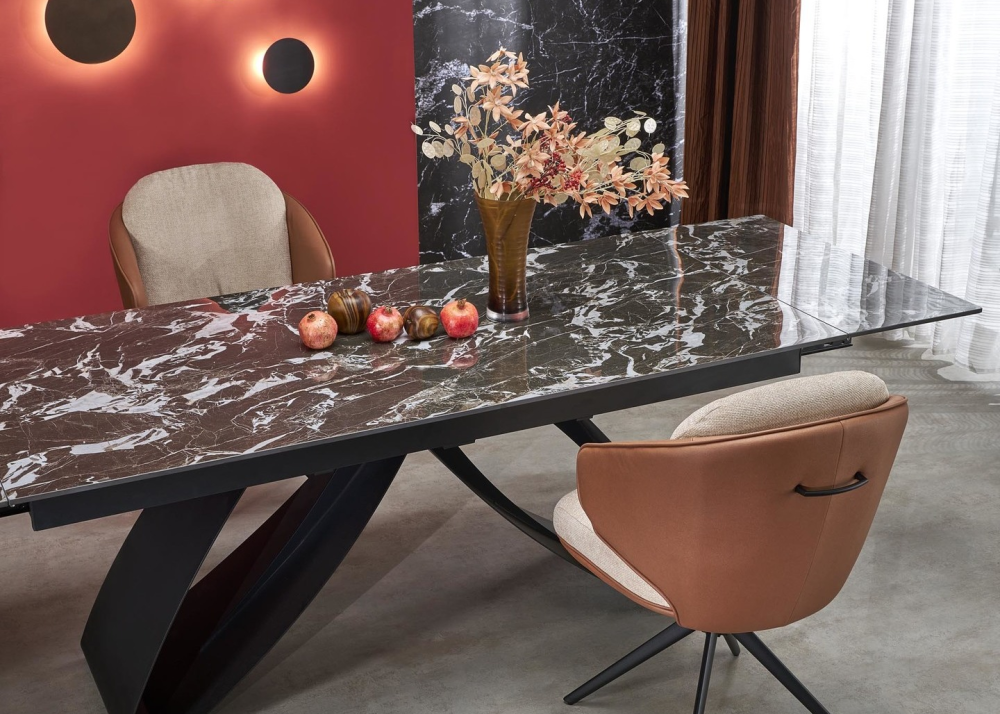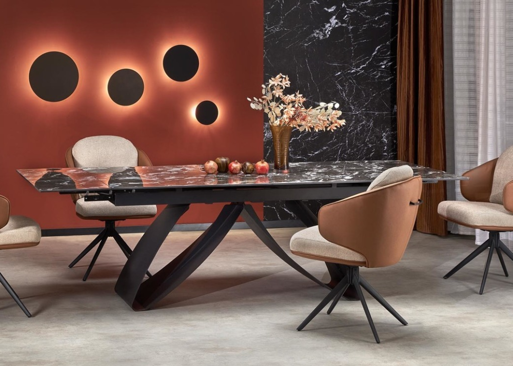 - Маса Hilario черен мрамор, с разтегателен плот от синтерован камък, в правоъгълна форма.