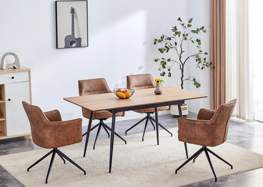 Трапезна маса Jared, се изработва от качествени и устойчиви материали, в дървесен декор с черни крака.