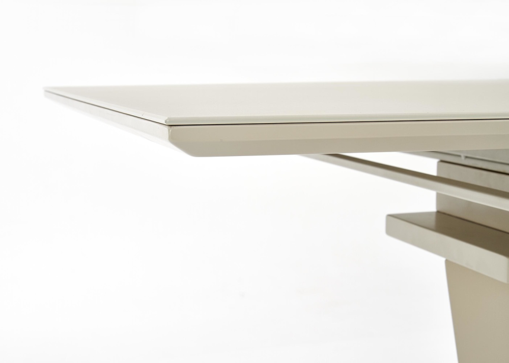 - Маса Sorento с разтегателен плот, от лакиран MDF и темперирано стъкло, в правоъгълна форма.