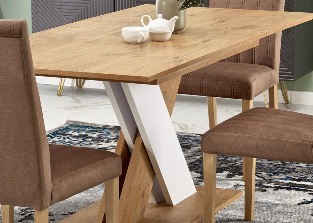 Трапезна маса Xarelto се изработва от качествени и устойчиви материали, в модерен дървесен дизайн.