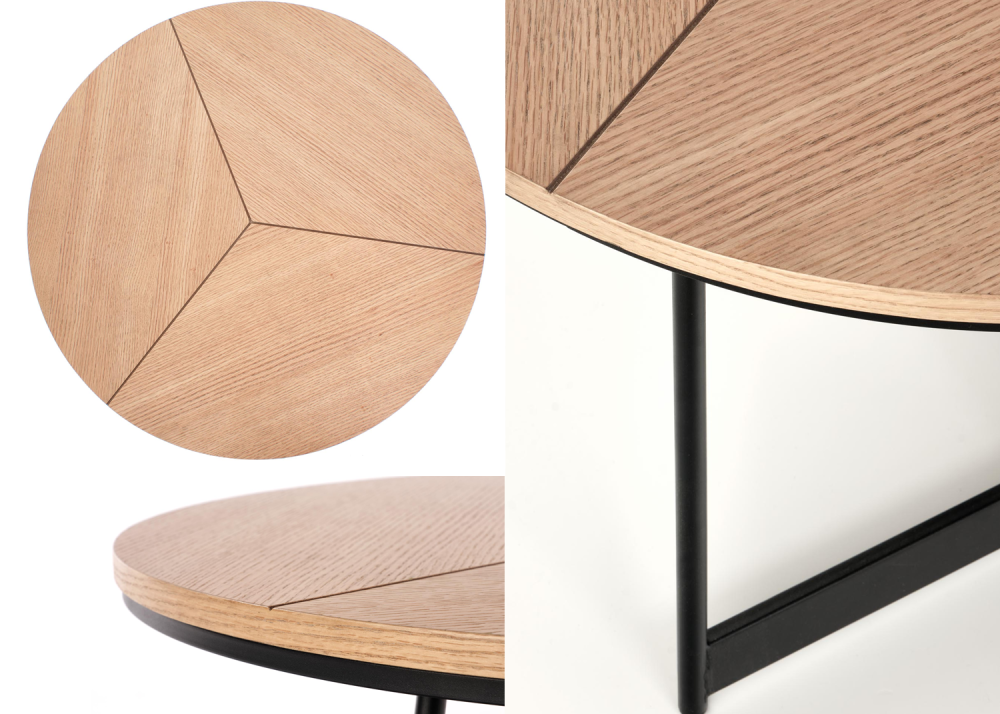 • Материали – ламиниран MDF + естествен фурнир / прахово боядисана стомана.